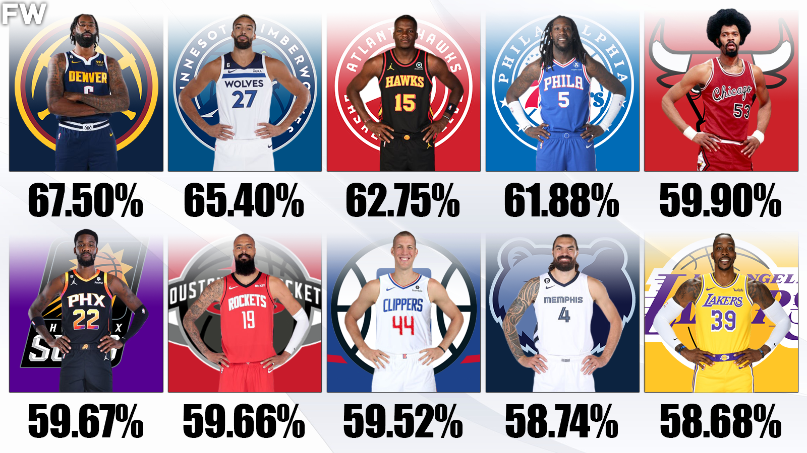 - 10. Dwight Howard – 58.68%