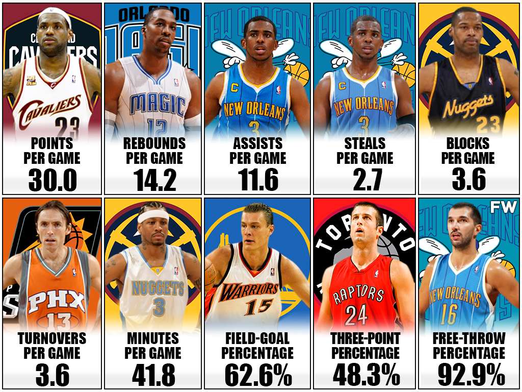 Leading the NBA in per-game stats is an extraordinary achievement, and only the best players in specific categories manage to have records. We have compiled a list of the highest per-game stats during the 2008 season, a year filled with player movement and a ton of drama. This was the season where Kevin Garnett and Ray Allen joined forces with Paul Pierce in Boston, and the Celtics later won the NBA title by defeating Kobe Bryant and the Lakers in the NBA Finals. By gathering stats the most important offensive and defensive stats, here are the 10 players holding the records for the 10 major categories during the 2007-2008 season.