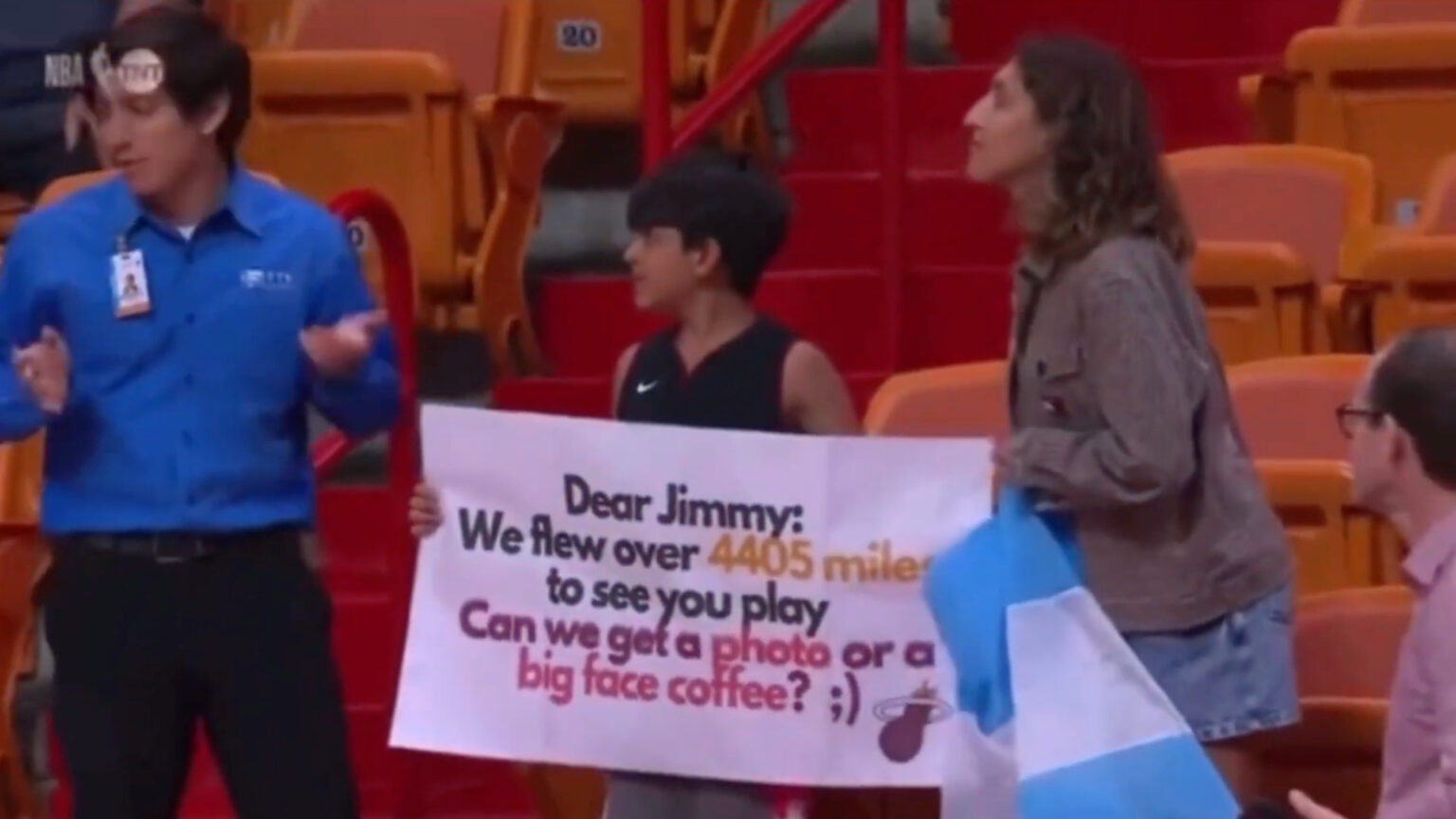 One such young Miami Heat and Jimmy Butler fan decided to do just that for the recent game of the organization. The kid even held up a banner saying he traveled over 4,405 miles to watch Butler play. The only thing that the kid wanted was a picture or a ‘Big Face’ coffee. Unfortunately, Butler was ruled out of the game just an hour before tip-off.