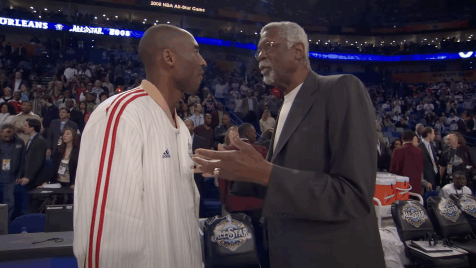 But perhaps the most beautiful interaction Russell had with a modern NBA star was the one with Kobe Bryant at the 2008 All-Star game. Kobe was having one of the best seasons of his career and would go on to win the regular-season MVP.