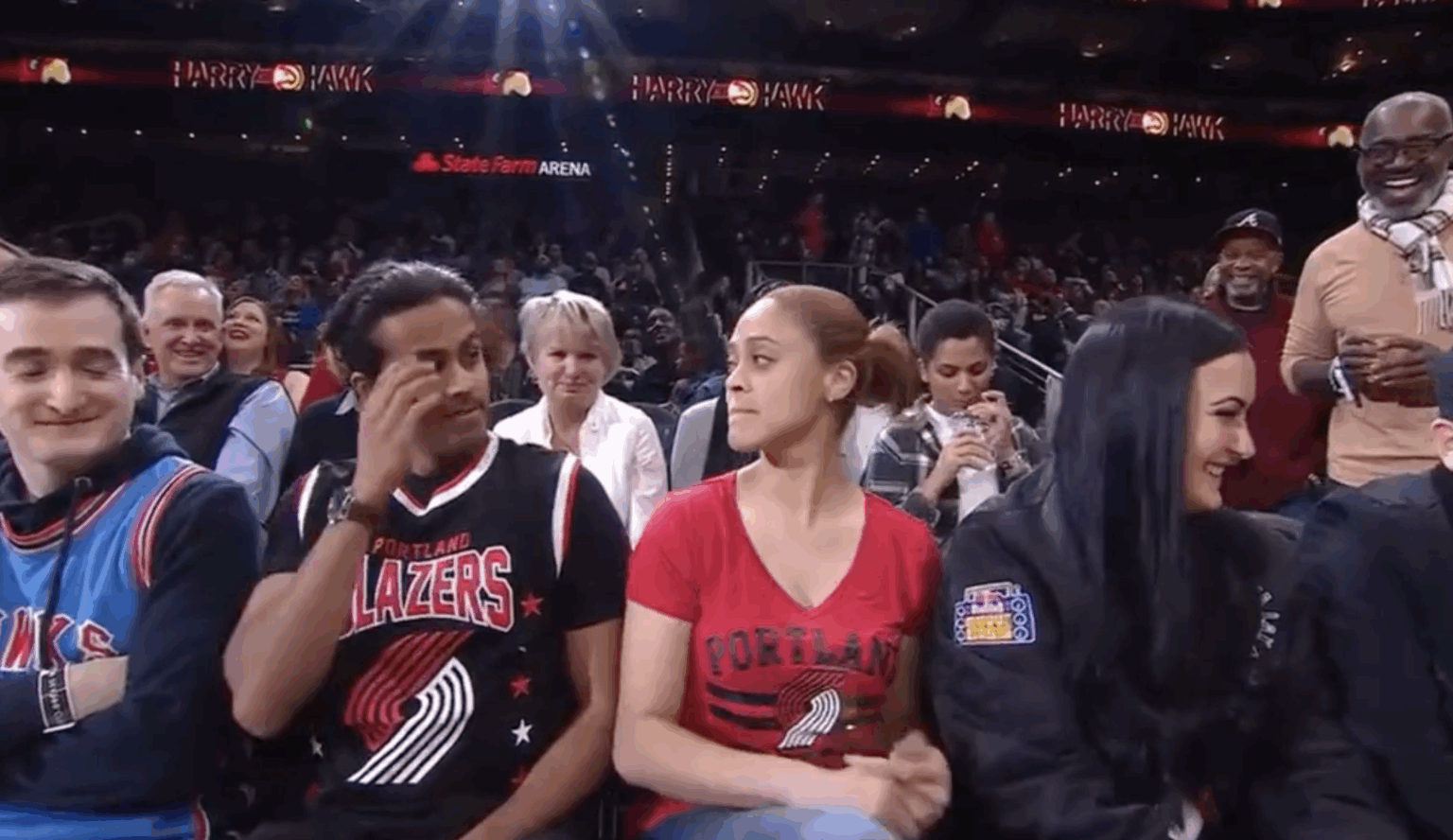 It was a typical game for Atlanta, who won by 9 against Portland, but what happened to one happy “couple” sitting courtside caused a scene (that may or may not have been staged) that went viral online.