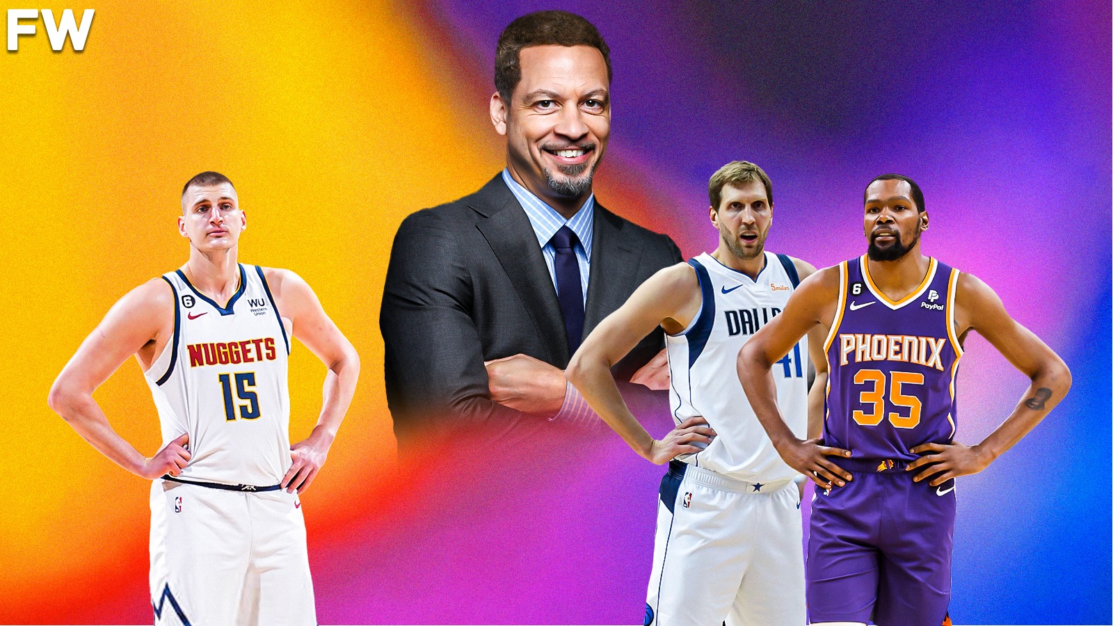 “He’s ahead of [Kevin] Garnett if he wins this championship. Probably [Charles] Barkley. I love Barkley, but this dude is leading a team to a championship and his numbers are outrageous. If he wins this championship he’s better than Dirk [Nowitzki]. I think he’s just better than Dirk, period. Dirk’s got one MVP and one championship, Jokic has two MVPs and may have the same championship. He’s a better rebounder, Dirk wasn’t a defender… I think Dirk is overrated by a lot of people… Durant? Not yet. When Jokic’s career is all said and done, he’ll be ahead of Kevin Durant.”