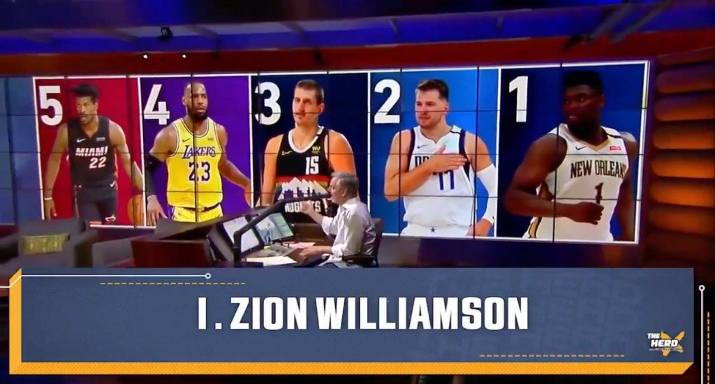 That’s why Colin Cowherd recently said that he would pick Zion as the perfect player to build a franchise around, even ahead of superstars like Jimmy Butler (5), LeBron James (4), Nikola Jokic (3), and Luka Doncic (2):