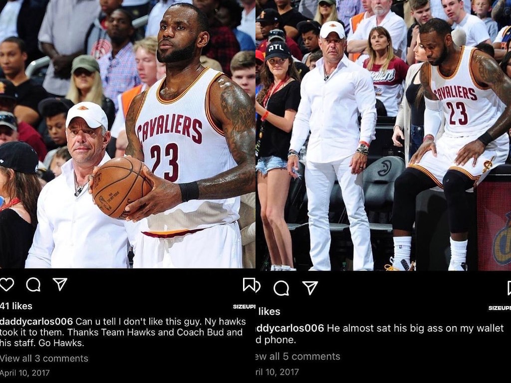 Carlos shared pics of him near LeBron James during games. While James was in the Cavs, in 2017, this man was already taking shots at the player on social media. He had the chance to taunt him face to face and didn’t miss it, but LeBron fired back and he was ejected from the game.