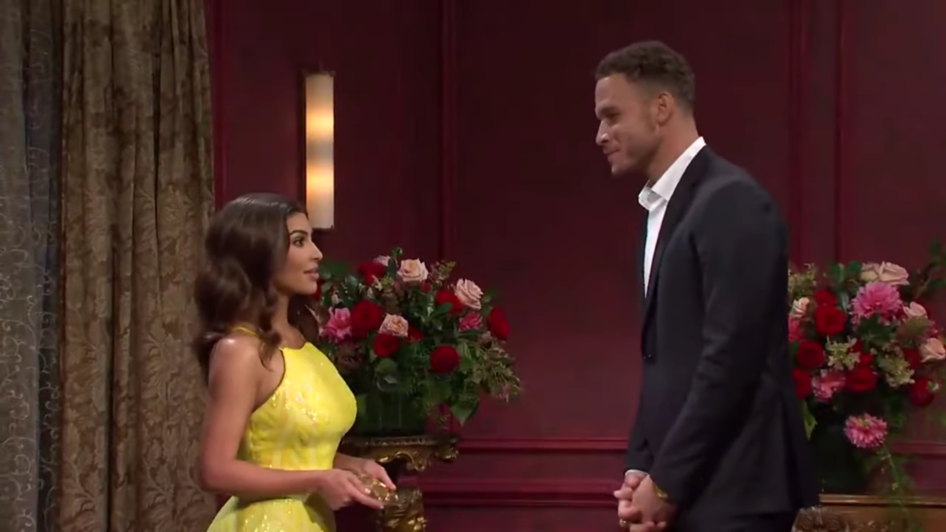 Kim Kardashian hosted the show and had one of the funniest skits of the night. The influencer had her bachelorette and played a woman named Rochelle. She named a series of candidates after supposedly dating them, including Blake.