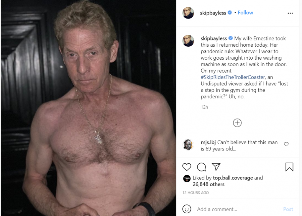 He has earned a reputation around the league and fans don’t miss their chance to troll him whenever they have the opportunity. Recently, he took to Instagram to show off his body and how well he’s maintained his fitness even during a global pandemic. Bayless is turning 70 this year and is looking better than a lot of young people right now, including the one writing this article.