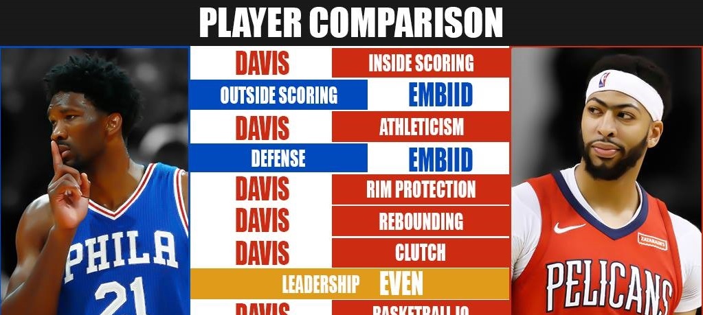 Home > NBA News & Analysis > Full Player Comparison: Joel Embiid vs. Anthony Davis (Breakdown)