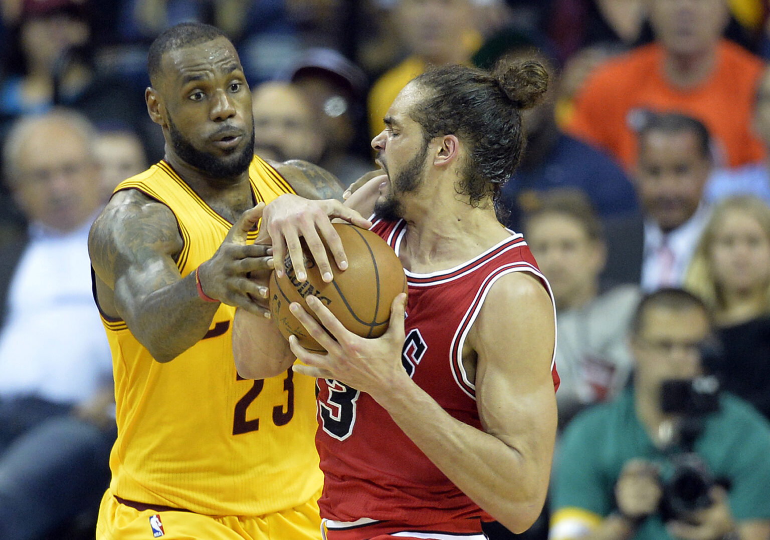 James averaged 26.8 points, 8.9 rebounds, and 7.9 assists against Noah’s Bulls in the postseason while Noah averaged 8.7 points and 10.6 rebounds against LeBron.