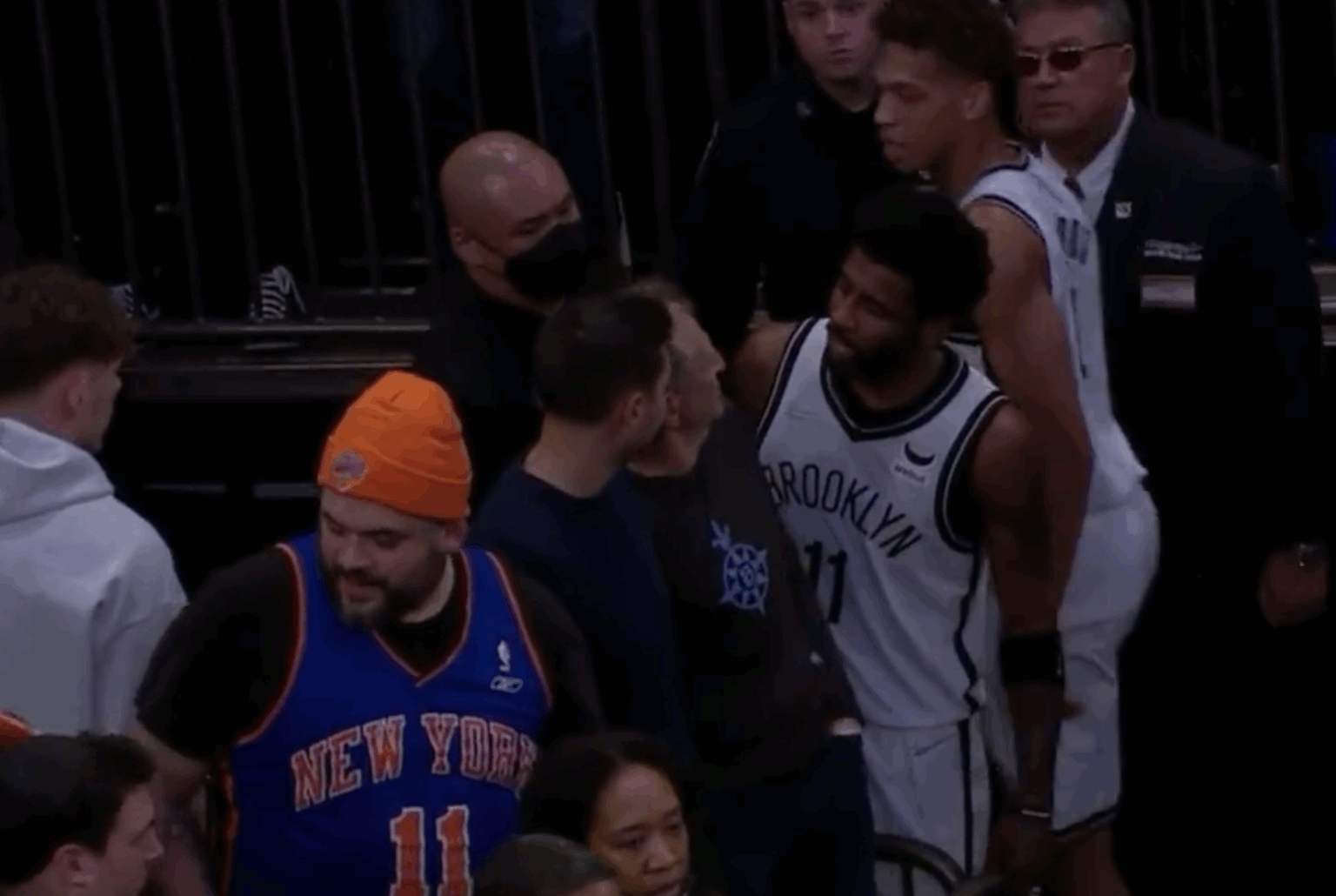 Kyrie Irving played his first game at Madison Square Garden this season, now that the New York vaccine mandate has been lifted, allowing him to play games in New York without getting vaccinated. The Nets didn’t have a good first half, and as they were going into the tunnel, Kyrie Irving thought he heard a fan trying to heckle him, and confronted him for it.