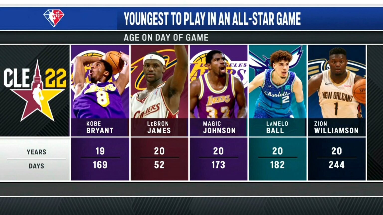 Overall, LaMelo will be the fourth youngest to appear in the All-Star Game, behind Kobe, LeBron and Magic.