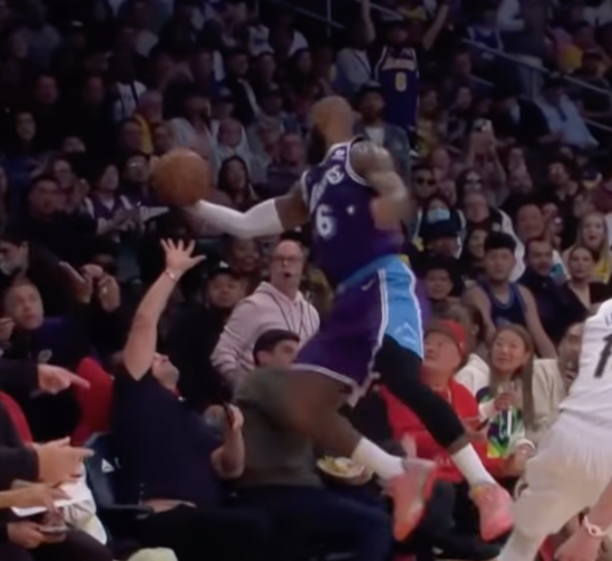 LeBron dove out of bounds trying to keep the ball from going outside the court and almost managed to save it. It proved to be a costly endeavor though, as he landed on top of some of the fans that were sitting in the front row. In an example of the Lakers’ season so far though, it didn’t quite work and the team lost the game by 3 points in the end.