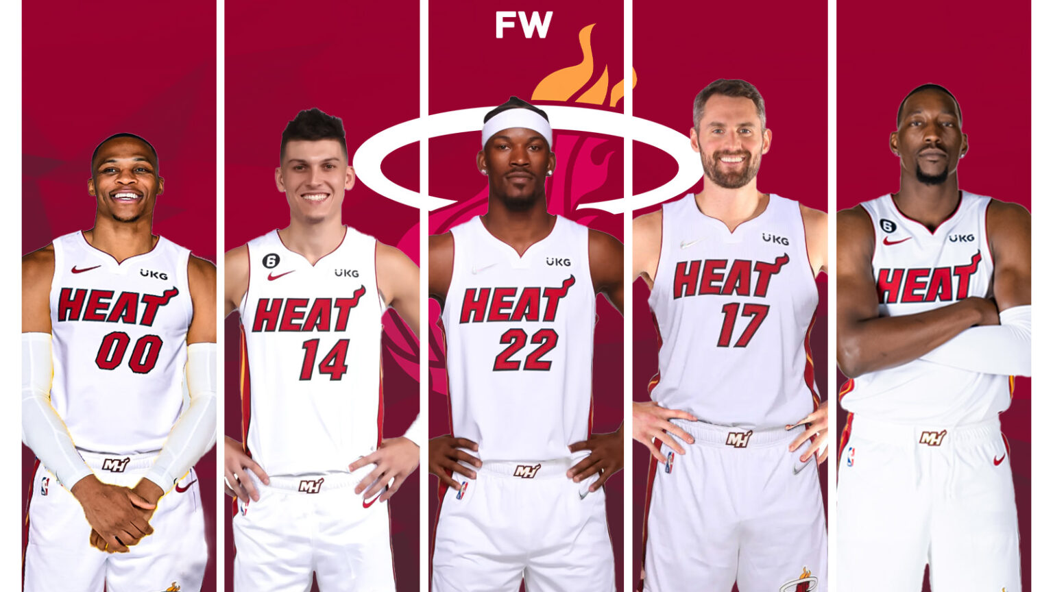 The starting lineup could feature Westbrook as the starter alongside Tyler Herro, Jimmy Butler, Love, and Bam Adebayo. This could be followed by bench options with Lowry, Max Strus, Victor Oladipo, Caleb Martin, and Gabe Vincent who are more than just a decent second unit.