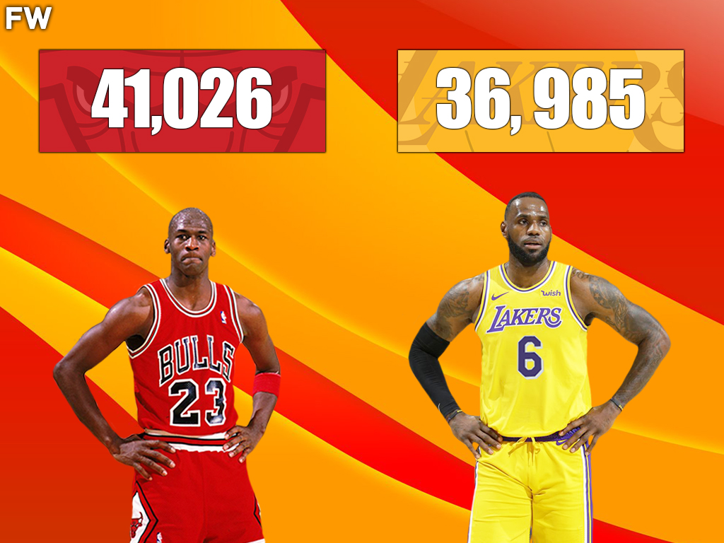Michael Jordan scored 32,292 points in 1072 games in his career. That would give him a career average of 30.12 points per game. If he were to play the same number of games as LeBron James, 1364 to be exact, he would have a total of 41,026 career points with that same average, a little less than 3000 points over Kareem Abdul-Jabbar, who has played almost 500 games more than Michael Jordan.