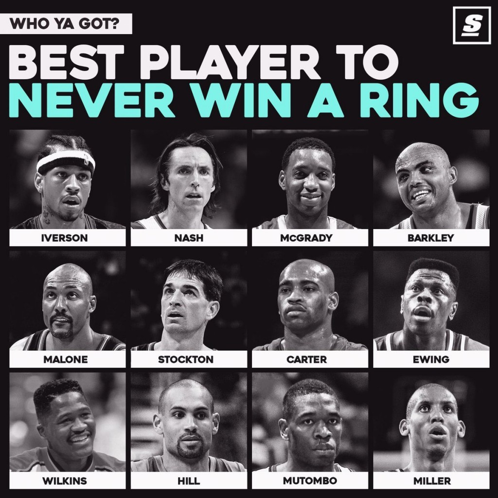 The Score shared a pic of the best players who never won a ring, featuring big names like Charles Barkley, Allen Iverson, or Steve Nash. Twitter user @Mjsgoat tweeted the pic, saying Jordan was responsible for half of the list.