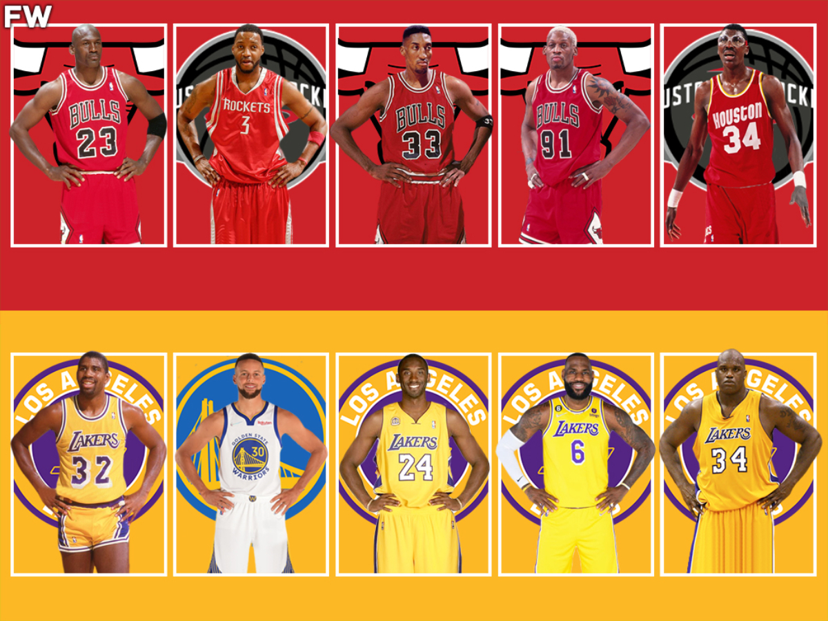 NBA fans debated which team would win when it's Michael Jordan, Scottie Pippen, Tracy McGrady, Dennis Rodman, and Hakeem Olajuwon against LeBron James, Kobe Bryant, Shaquille O'Neal, Stephen Curry, and Magic Johnson.