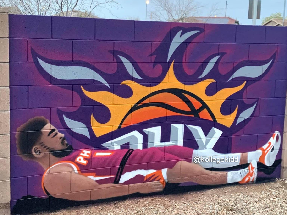 Understandably, this had made him a huge fan favorite in Phoenix, with Suns fans fiercely supporting and defending Booker. And the latest development has been a mural of him going up on a wall in the city. Booker is known to hit some tough jump shots, and his iconic pose of lying on the ground after making a huge one has been chosen for the mural. It’s safe to say he knows how to deliver some iconic moments. However, there does seem to be one problem with it.