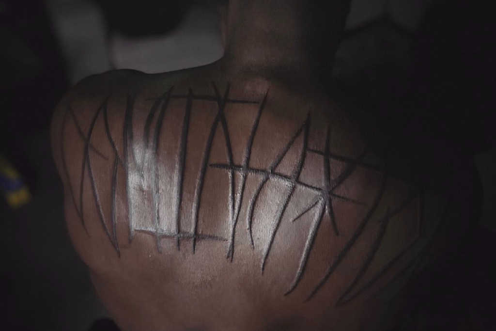 so… to be clear, he got a tattoo labeled as domination, but its spelled dominayton. and its like marks from a whip…….. pic.twitter.com/tl19Zttl8S