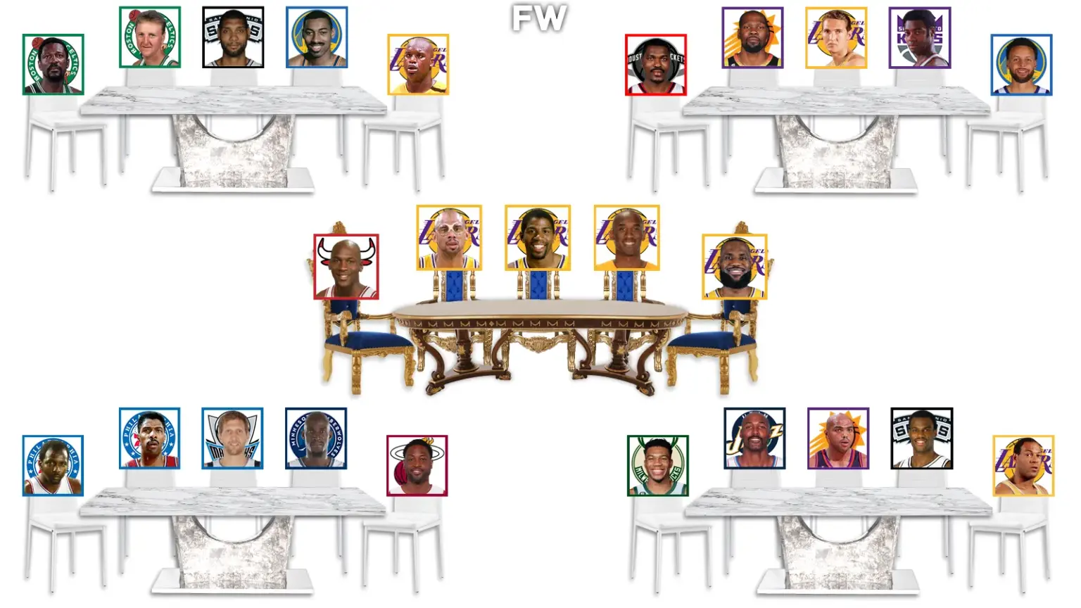 These are the NBA lunch tables for the greatest players of all time.