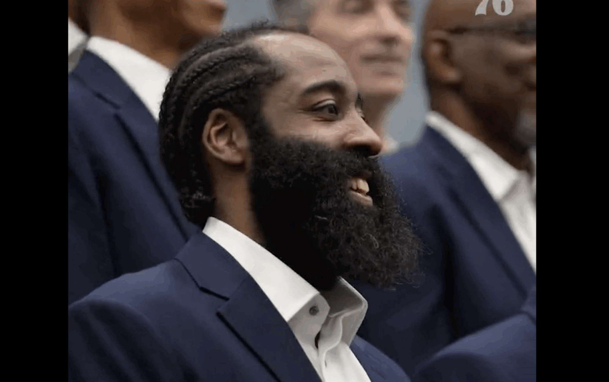 As James Harden lined up in front of the camera, alongside NBA legends, he became the subject of a joke that went viral on Twitter.