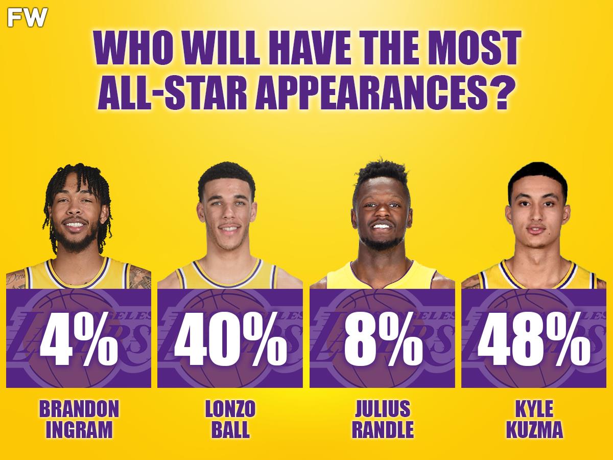 Ingram was the first to become an All-Star in the group, attaining the honor in 2019. And last season, Julius Randle became an All-Star for the first time in his career. Lonzo Ball is expected to improve greatly and become an All-Star this season. As for Kuzma, his game has actually regressed since the poll was conducted.