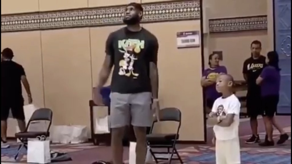 During the Lakers’ Saturday practice ahead of Game 2 in the Western Conference Finals, James was shooting some corner threes and the little kid came close to see the King (and trash talk him).