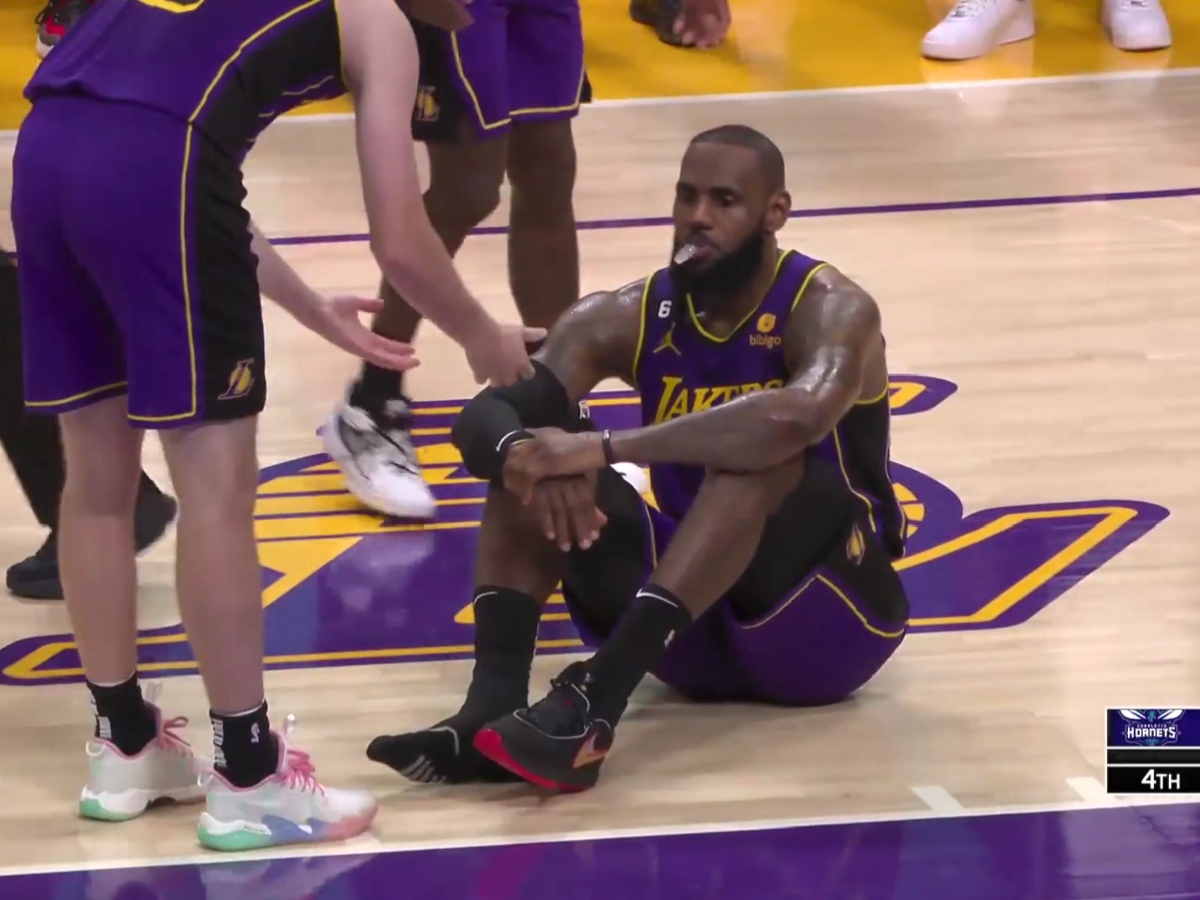After the play was finished and the Hornets secured their win, James stayed on the floor, and while some teammates offered him a hand to get up, James didn’t accept any of that and waited until somebody got him his shoe. He never took anybody’s hands, and his face said he wasn’t happy with anything at that moment.