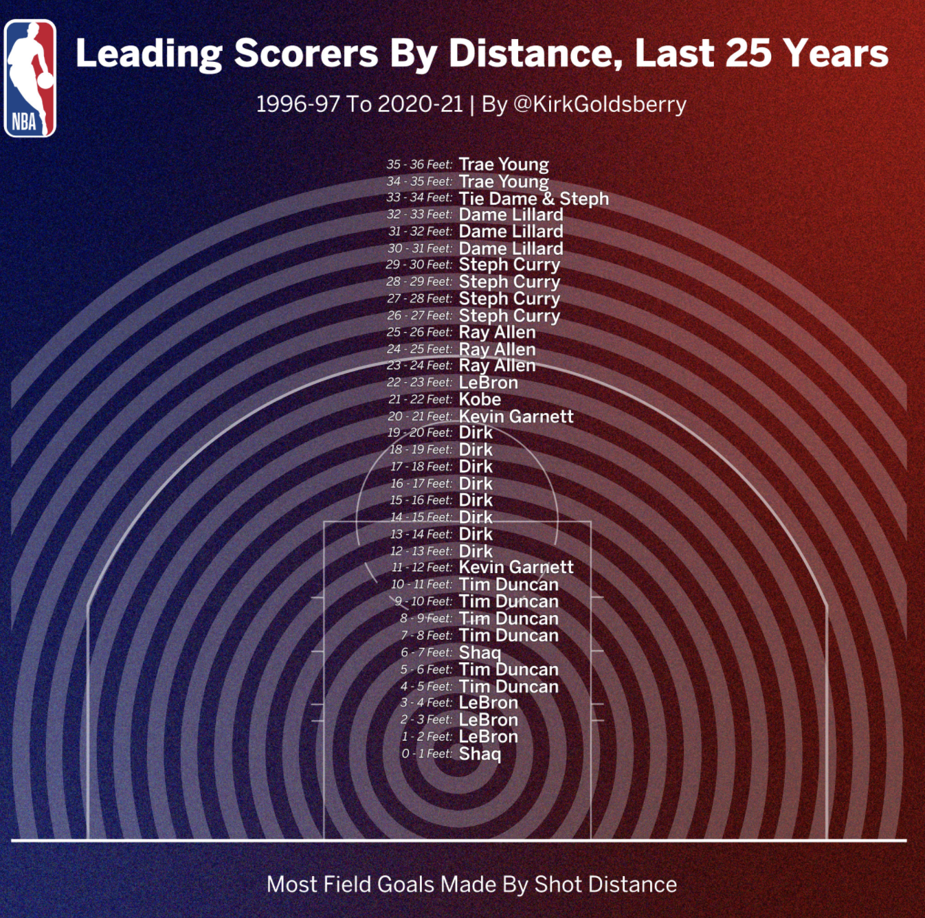 Leading Scorers By Distance, Last 25 Years pic.twitter.com/dogDoNw1xe