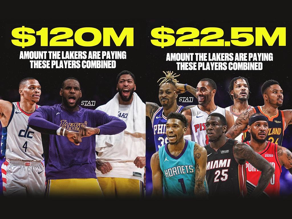 Statline compared the salaries of Russell Westbrook, LeBron James, and Anthony Davis against the rest of the team and the difference is abysmal. While the Big 3 will make $120 million this upcoming season, the rest of the squad will get $22.5 million combined (via HoopsHype).