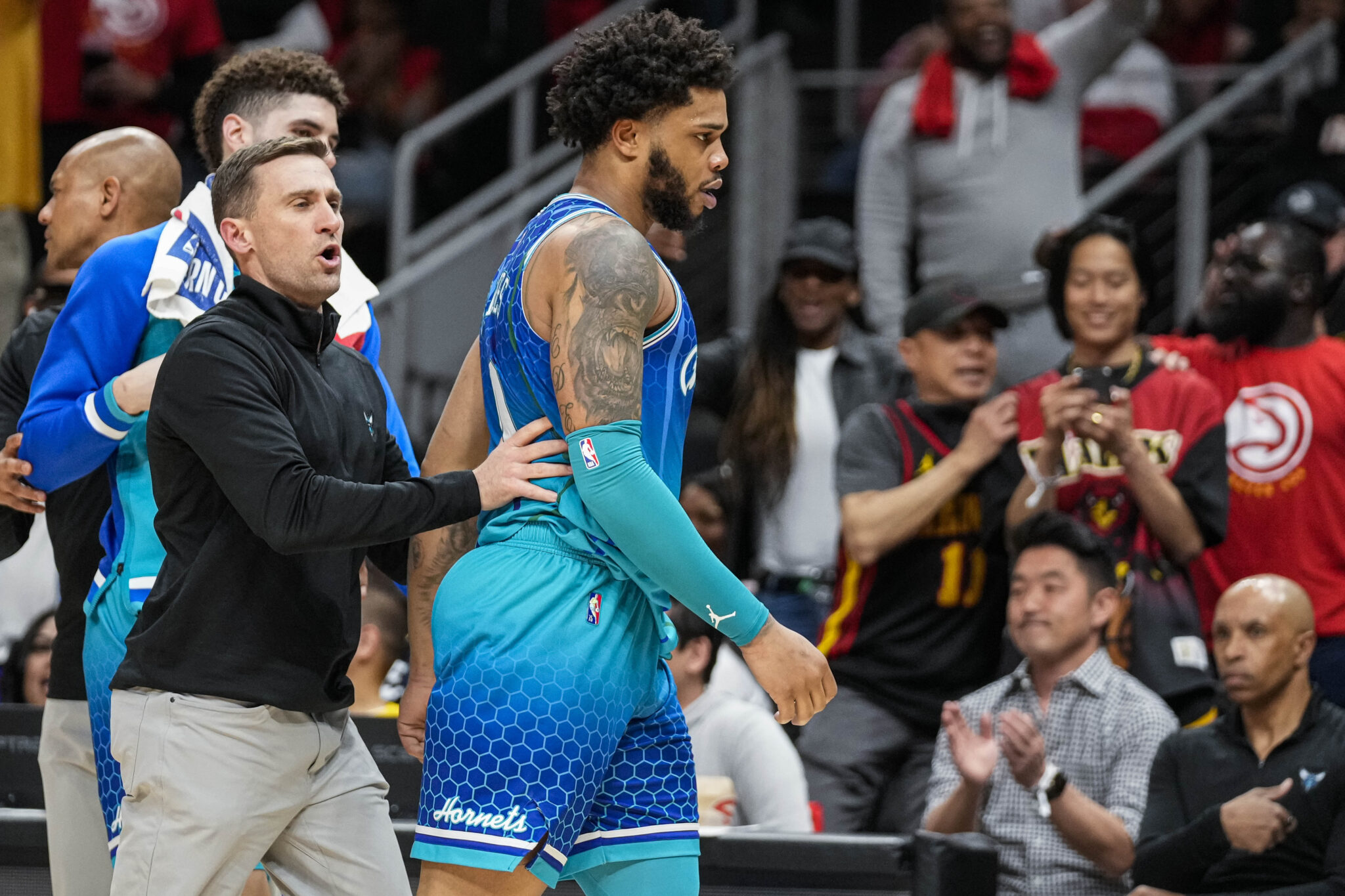 One Hornets player seemed a little more aggravated by the entire situation than others. Miles Bridges was ejected with about 6 minutes in the fourth quarter left. However, Bridges didn’t appreciate the ejection and blew a gasket on his way back to the locker room. In the process, Bridges took out his mouthpiece and threw it at a heckling fan.