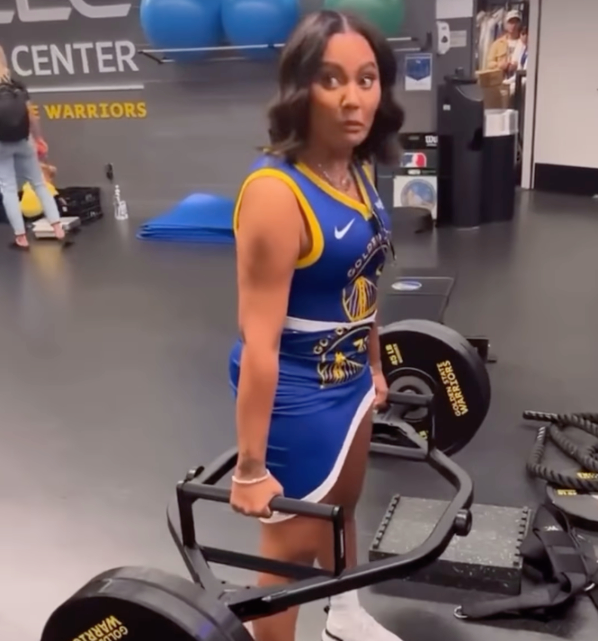 Stephen and Ayesha are darlings of a large part of the NBA fanbase, so anything that they get up to is usually talked about on social media. And the latest bit of content to go viral is a video of Ayesha in full Warriors gear at the gym. She lifted what look like pretty serious weights and had a funny reaction to her accomplishment, seemingly surprised by it.