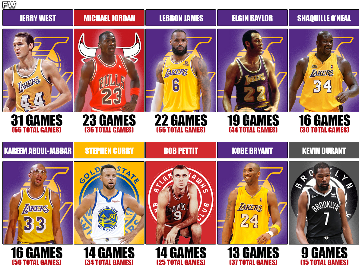 - 1. Jerry West – 31 Games (55 Total Games)