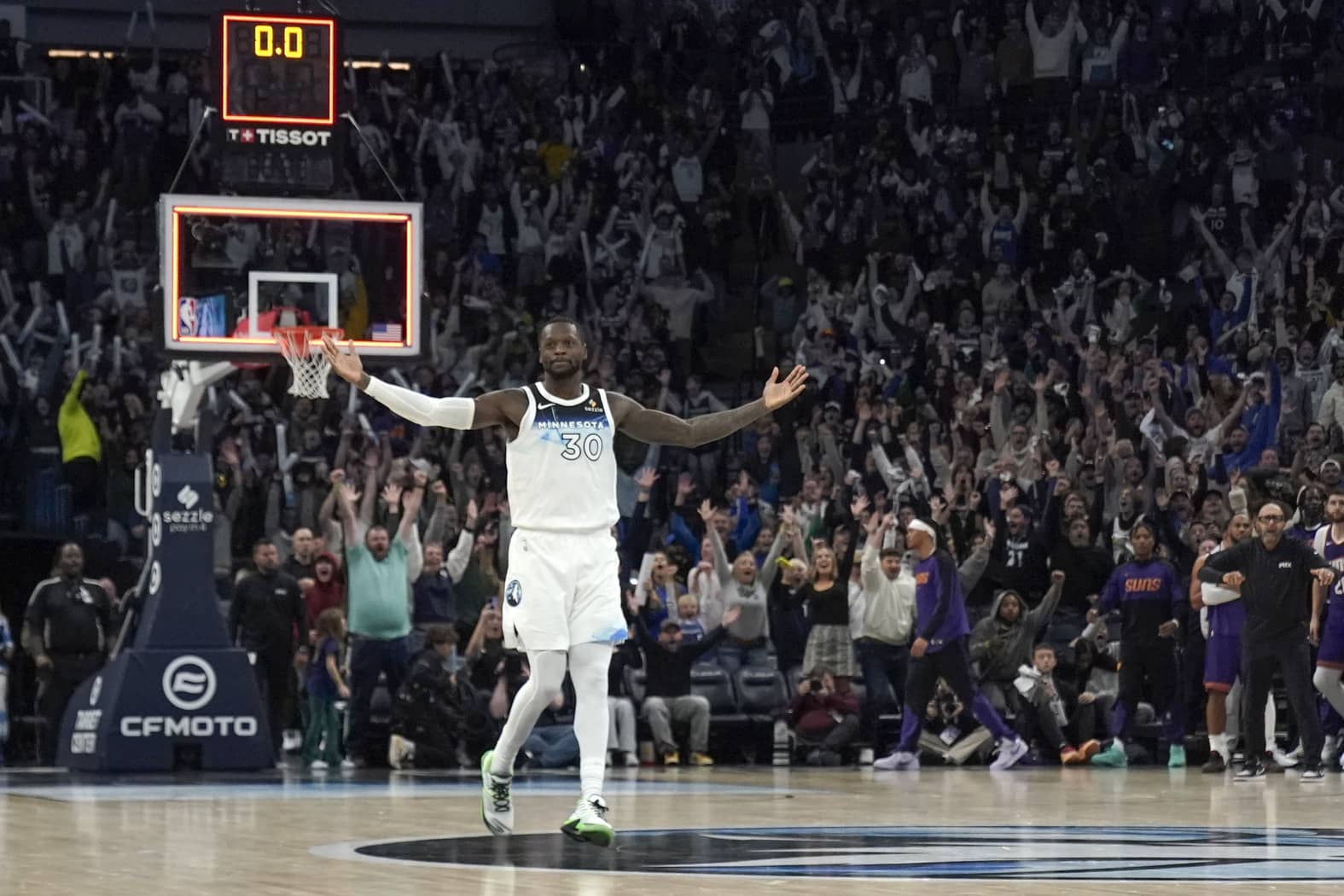 The Minnesota Timberwolves faced off against their 2024 Playoff opponents, the Phoenix Suns tonight and walked away with a 120-117 win courtesy of a Julius Randle game-winner. Randle hit an incredible three over Josh Okogie to seal the win in a 35-point night.