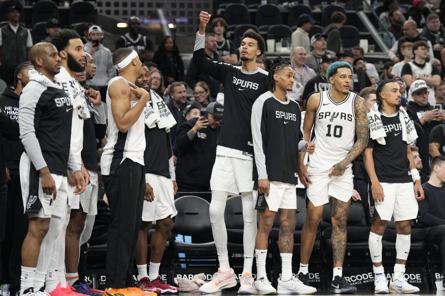 The frontcourt trio is likely to feature Harrison Barnes, Jeremy Sochan, and Victor Wembanyama.