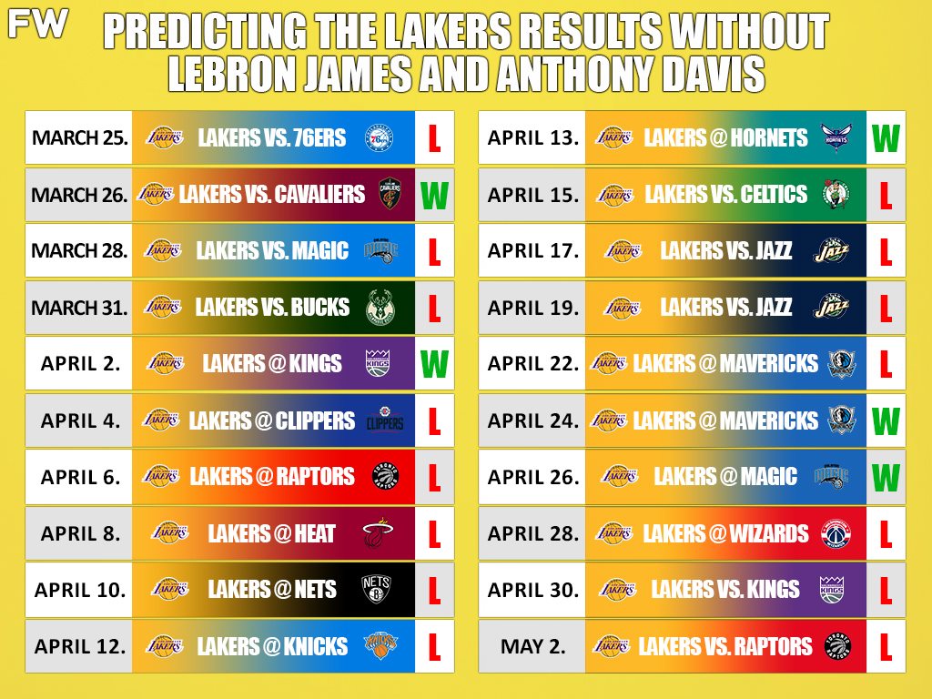 Reading: Predicting The Lakers Results (Wins And Losses) Without LeBron James And Anthony Davis