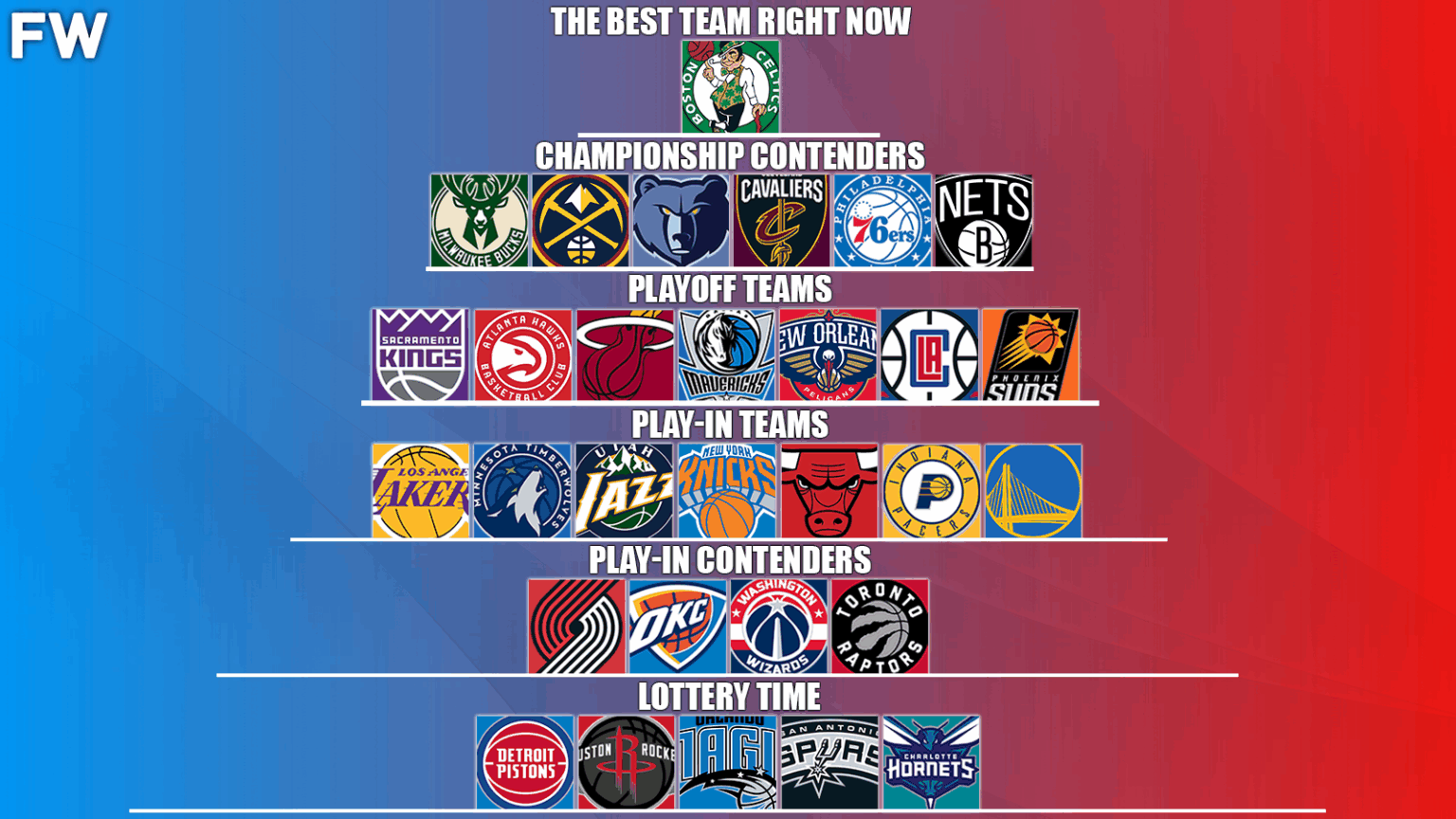 The Los Angeles Lakers have been disappointing yet again, while the Phoenix Suns and Golden State Warriors have been well below their usual levels. In the East, the Atlanta Hawks and Miami Heat have struggled far more than anyone thought they would, and both teams could be looking to make moves before the trade deadline. Without further ado, here’s where the teams and their competition stand as we separate them into tiers.