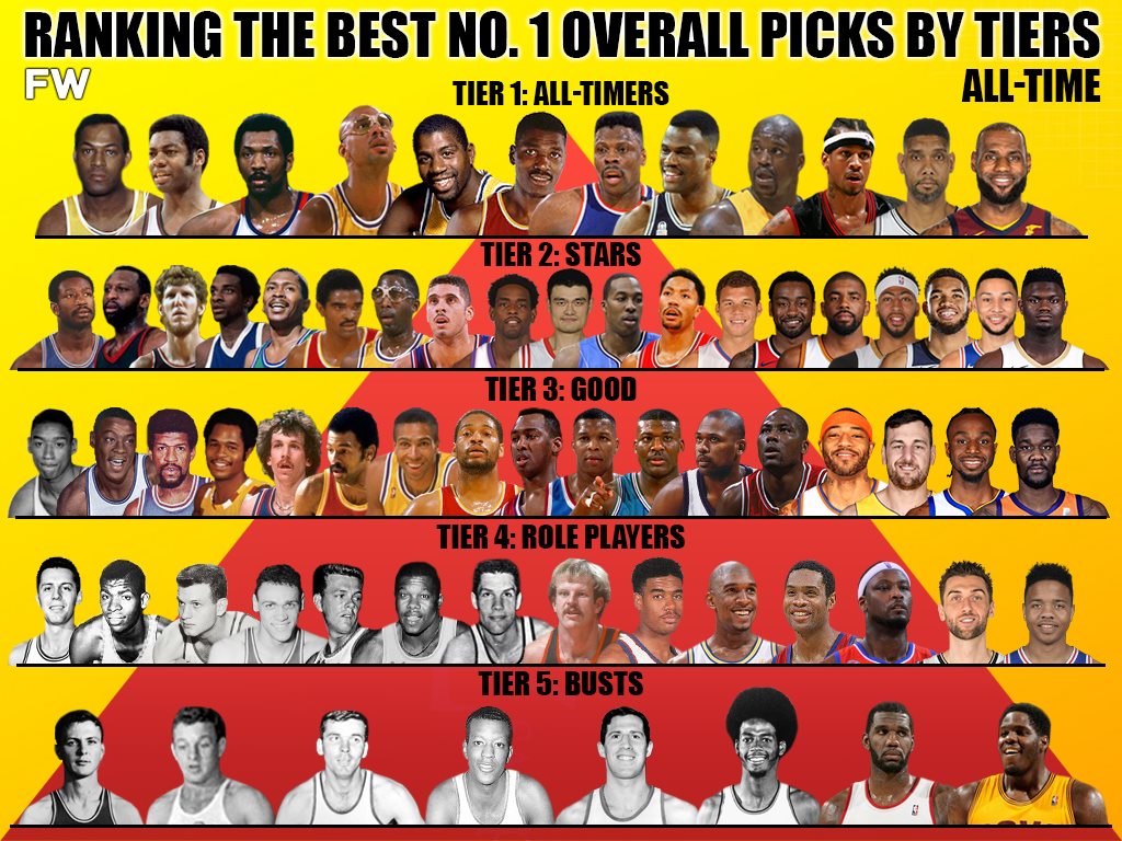 There have been 73 No.1 picks throughout NBA history. Some are legends, some were horrid, and many were in between. Let’s rank them all by tiers, ranging from absolute busts to all-timers.