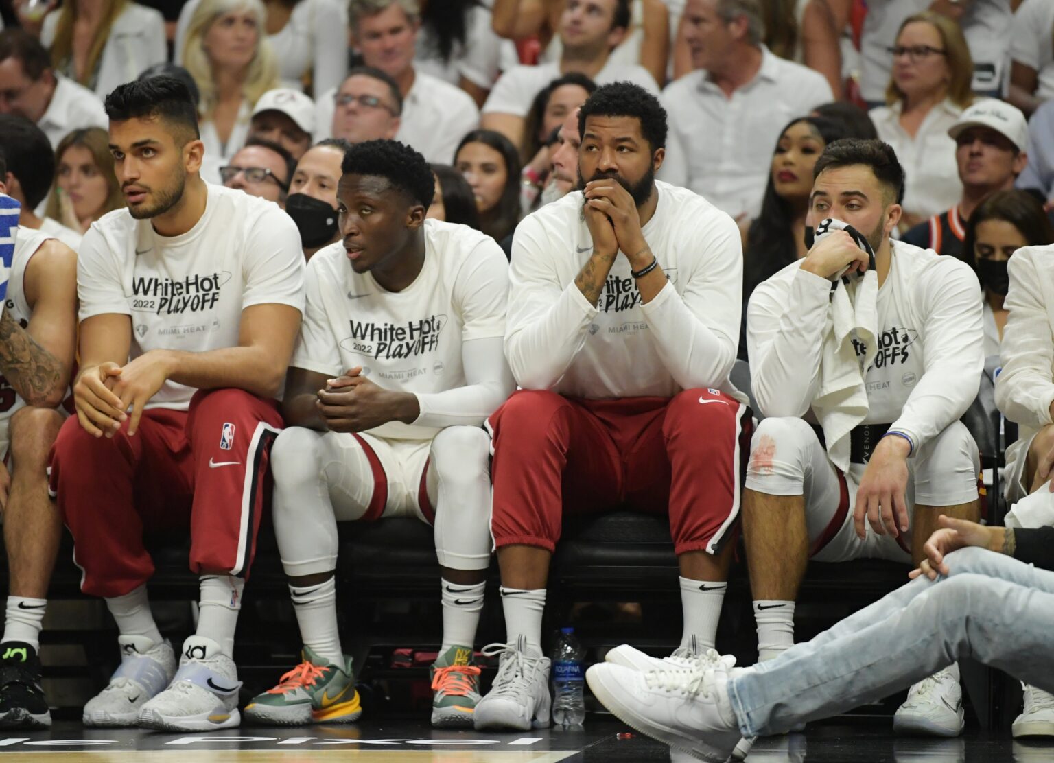 “One of the most horrific offensive performances you’ve ever seen. The Boston Celtics are an elite defensive team, we get all of that… Kyle Lowry, yeah he was 0-6, but we all know he’s hobbled, we all know he’s lucky to be out here because he has a bad hamstring injury. With Tyler Herro out with his hamstring injury, he had to try and give you all that he could but he just didn’t have it. Oladipo, an offensive weapon throughout the series, he shoots 1-7 from the field. Jimmy Butler, clearly hobbled by his knee injury, had no lift whatsoever, went out there and tried to give you his all but shot 4-18 from the field. I don’t care who you are, how great or putrid your defense is. If you can’t make shots, anybody can beat you. That was the Miami Heat tonight. They resembled a bunch of construction workers looking like they were throwing bricks all over the damn place. And that is why the Miami Heat are going to Boston, getting set to be eliminated from the conference finals this Friday night. My reservations are already made. I ain’t coming back to Miami.”