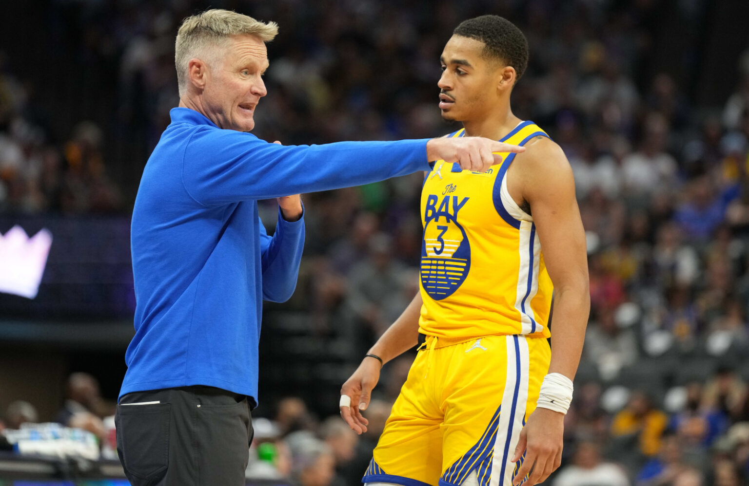 Steve Kerr was seen giving Jordan Poole a piece of his mind after he committed a poor turnover and got an unnecessary technical foul.