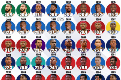 The Most Points Per Game By Small Forwards In The Last 40 Years: Kevin Durant Is The Last One To Score Over 30 PPG