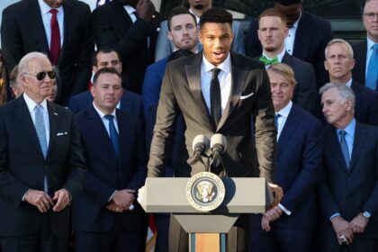 Giannis Antetokounmpo Jokes At The White House That He’s Running For Office In 2024: “I’m Going To Be The Most Handsome President Ever.”