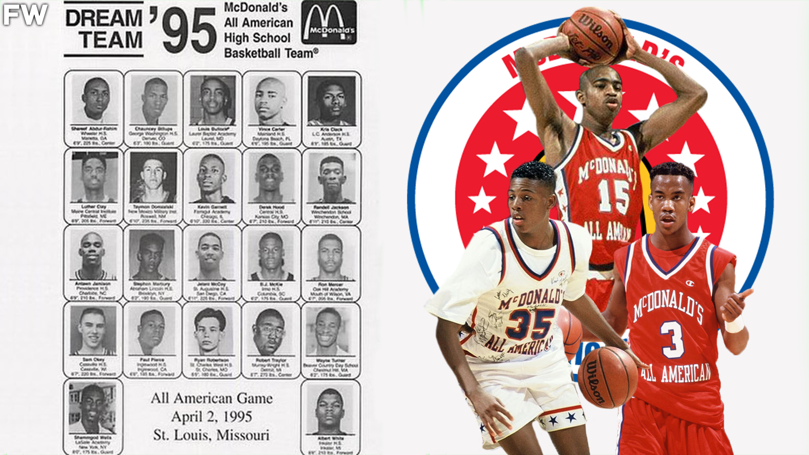 But today, our focus is not on that. Instead, it’s on the 1995 McDonalds All-American game roster. It was undoubtedly one of the most stacked teams ever, with the likes of Paul Pierce, Kevin Garnett, and Vince Carter on the team.