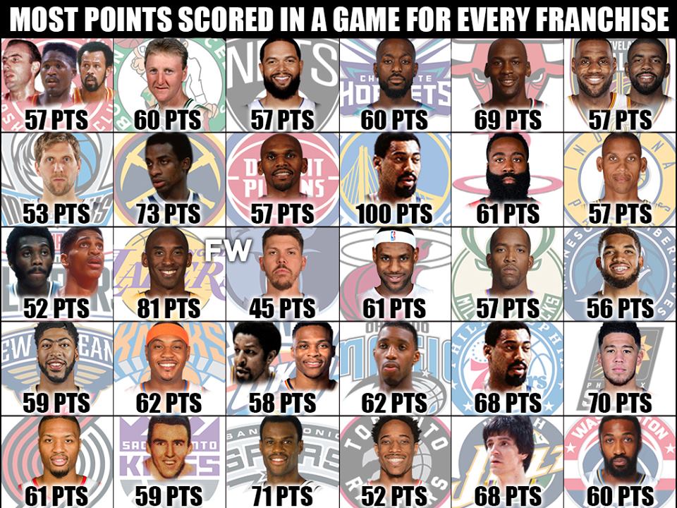 Every NBA team has seen one of their players take the reins of the game and go off in a certain match, making history for themselves and their respective franchises. Redditor ‘DraymondShldntWear23’ posted a complete list of the most points scored in a single game for every franchise in the NBA.