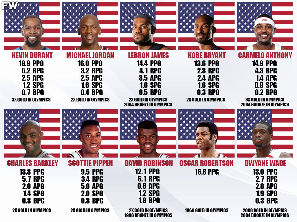 Throughout history, certain players have stood out as the most impactful for Team USA. Kevin Durant was spectacular yet again in the Olympics, but does his 3rd medal give him the edge over other all-time legends such as Michael Jordan, Kobe Bryant, Carmelo Anthony, and Charles Barkley? Here are the 10 greatest players who have ever played for Team USA.