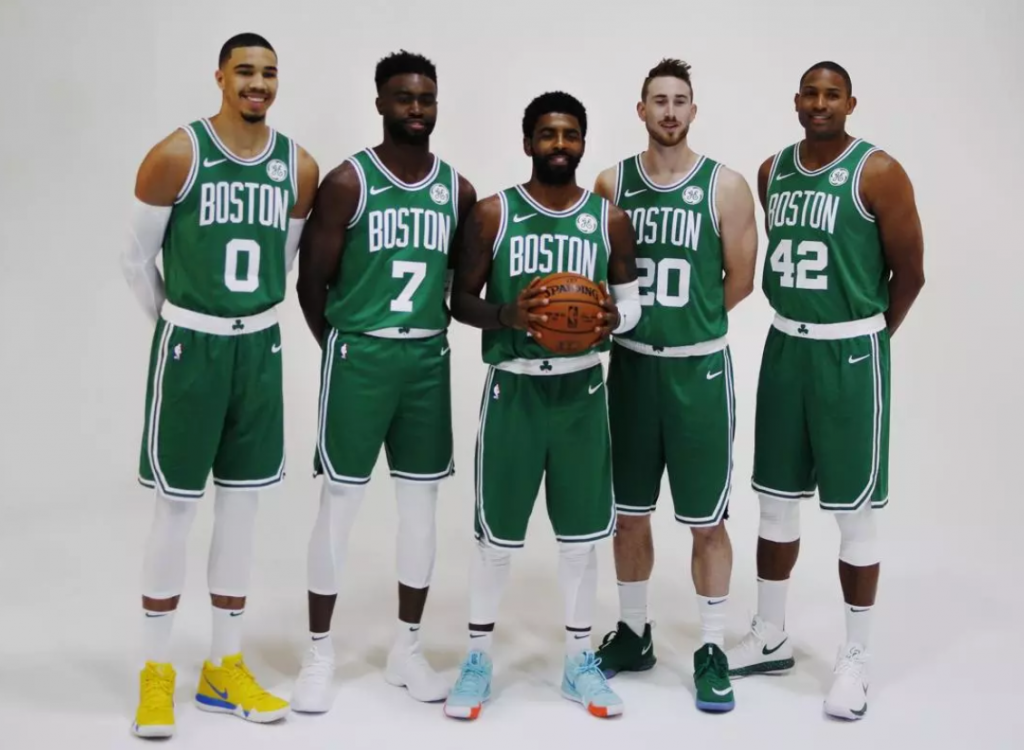 - 1. Kyrie Irving, Jaylen Brown, Gordon Hayward, Jayson Tatum, Al Horford (90.5 ppg, -4.5 ntrg)