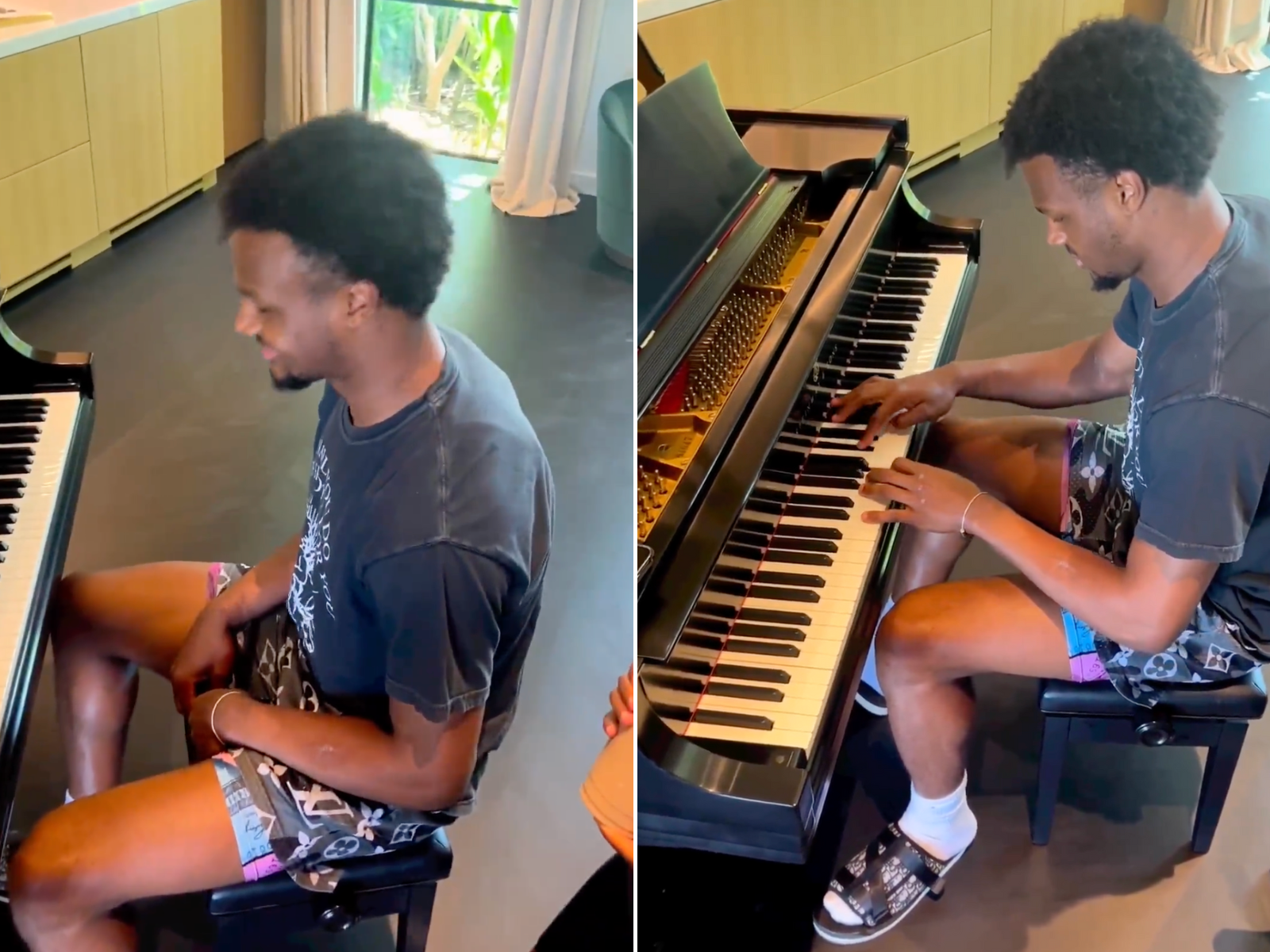 • Bronny James was seen playing the piano after returning home