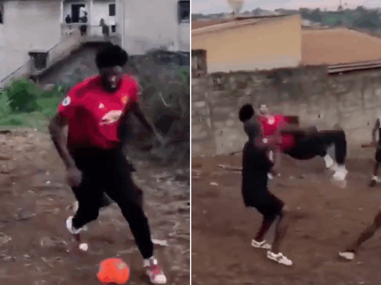 In a video from 2018 that’s resurfaced on social media, Philadelphia 76ers star Joel Embiid was seen attempting a bicycle kick while playing with his fans back home in Africa, much to the delight of the fans.