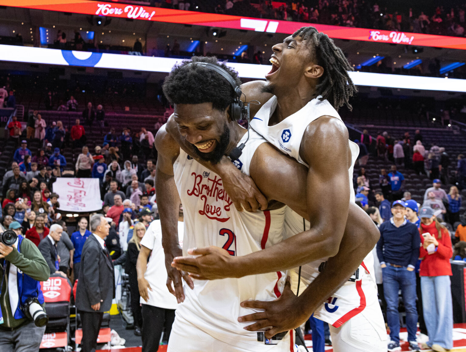 Embiid could have easily had a 60-point night if he had made more free throws, going 20-24 on the night. As he told the interviewer that he missed too many free throws, teammate Tyrese Maxey jumped at the center in joy and jokingly told him that he sucked.